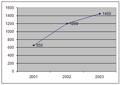 На графике 1. можно увидеть динамику объемов этого рынка (тыс. т) в 2001-2002 гг. и прогнозы экспертов на 2003 год.