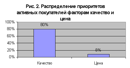 Типичными потребителями соков являются представители среднего класса населения до 30-35 лет, имеющие семью, высокий уровень доходов, ведущие здоровый, активный образ жизни. И хотя покупку сока, как и прочих продуктов питания, чаще всего осуществляют женщины, активными потребителями являются все члены семьи. Основные причины для потребления сока - утоление жажды и польза для здоровья, ведь вопросы здорового питания сегодня очень популярны. Наиболее важным фактором, влияющим на процесс осуществления выбора потребителем, являются вкусовые качества продукта, например 80% потребителей сока в Санкт-Петербурге считают качество продукта решающим фактором. Менее значима цена сока – только 8% жителей Санкт-Петербурга отметили этот фактор (рис. 2').
