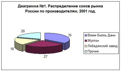 Уже в 2001 году рост рынка сока составил 40-50%, по данным маркетинговых агентств, в 2001 году в розничной продаже на 10% увеличилась доля продукции отечественного производства, что подтверждает тенденция импортозамещения.