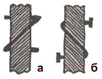 Рис. 3. Расположение витков в пряже: а – правой крутки; б – левой крутки