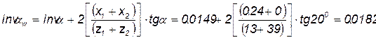 Угол зацепления определяется по таблице инволют. Инволюта угла зацепления определяется по формуле:
