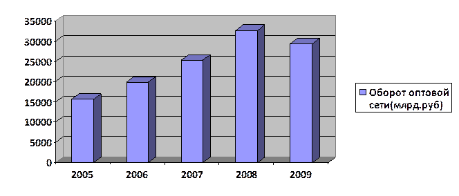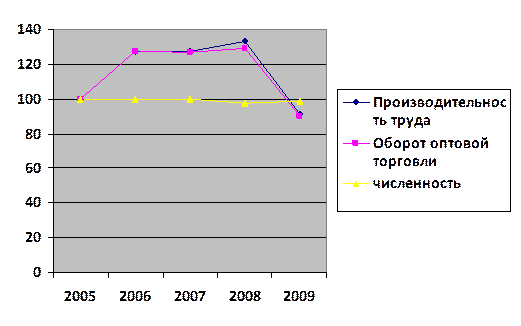 Исследуя данные оптового оборота за 2005-2009 года можно прийти к выводу, что он увеличивается вплоть до 2009 г.