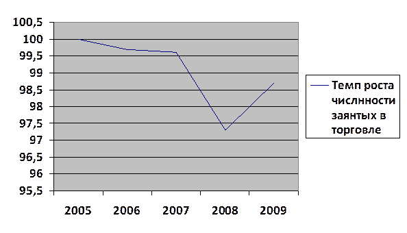 Изменение численности занятых в торговле наглядно продемонстрировано на рисунке 3.3.