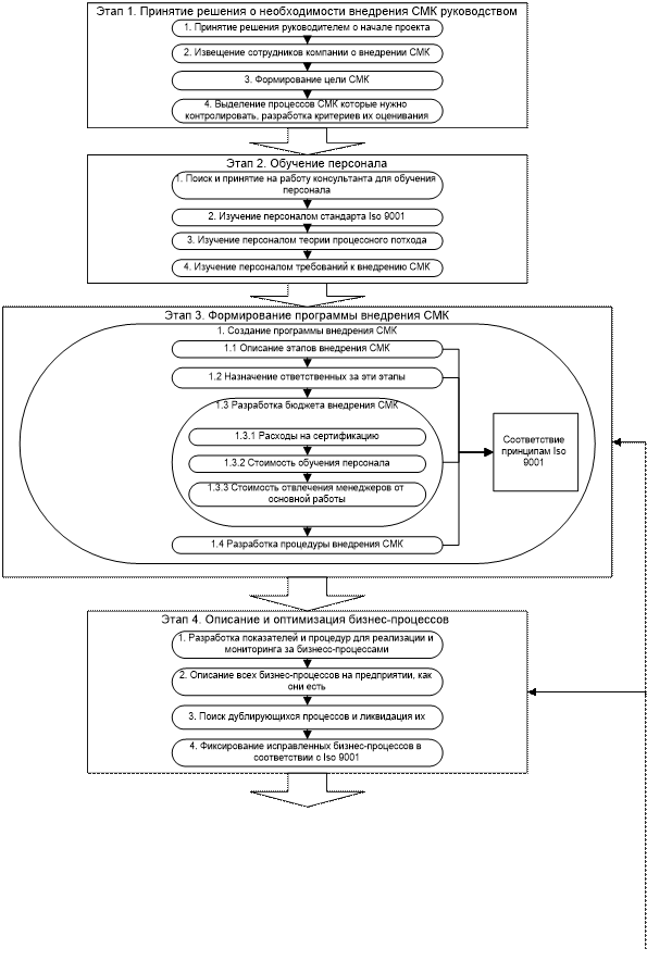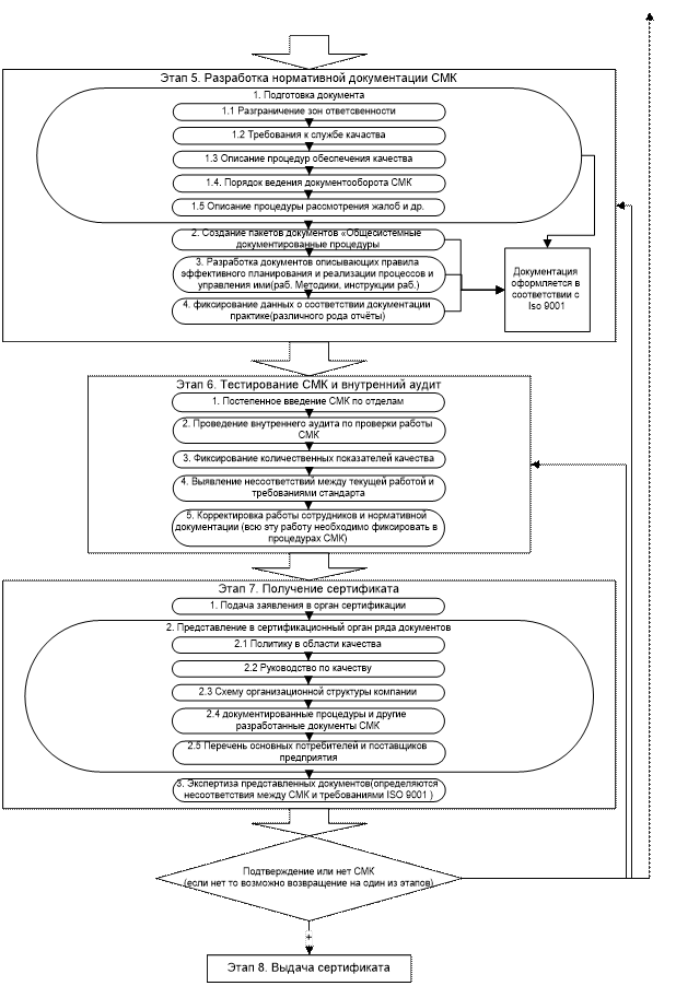 Проанализировав механизм внедрения СМК в нём можно выделить 8 этапов: