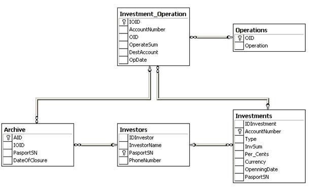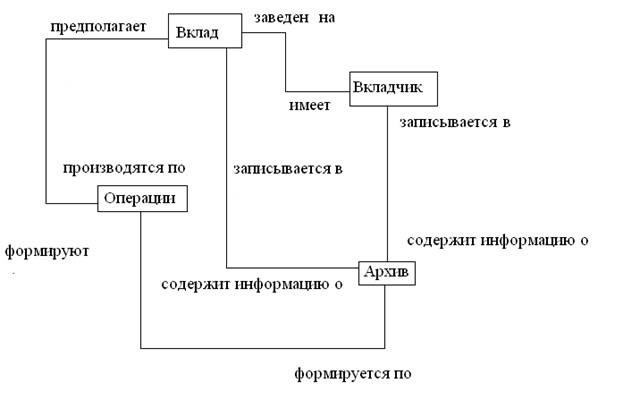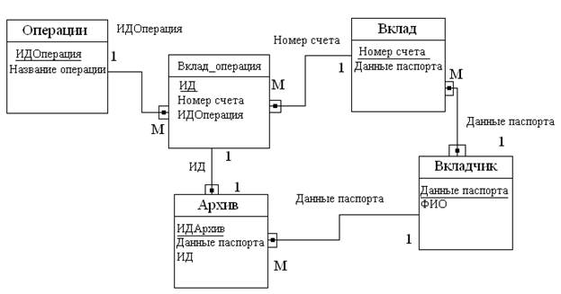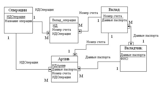 База данных должна содержать следующие данные: вкладчики, вклады, виды вкладов, операции по вкладу, закрытие вклада и архив.