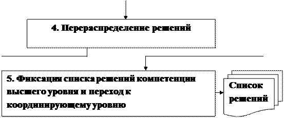 Если расчетная величина больше допустимой, осуществляется перераспределения решений. Если нет, фиксируется список решений компетенции высшего уровня.