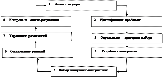 Наиболее целостное и наглядное представление о процессе принятия решений дает схема № 1, отражающая его основные стадии и порядок их следования.