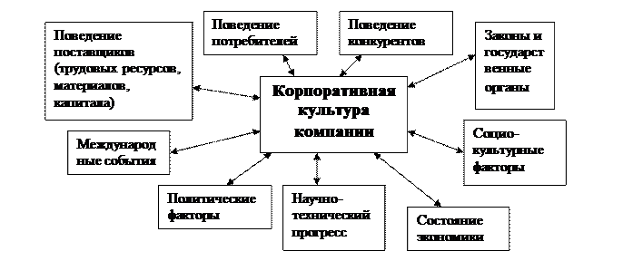 1. Корпоративная культура отражает отношения не только между членами компании, но и комплекс представлений о назначении организации в целом и ее членов, а также цели, характер продукции и рынок, которые определяют эффективность организации;