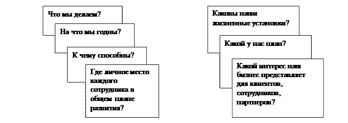 Создание системы корпоративных ценностей — это процесс, требующий ответов на множество вопросов (рис.2.4.). Ценности должны отвечать потребности людей получать подтверждение о том, что дело, которым они занимаются, имеет значение, выходящее за рамки конкретного бизнеса, должности, конкретных коллег по работе, конкретного оклада.
