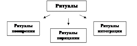 Видимыми проявлениями корпоративной культуры являются ритуалы. Ритуалы служат средством для наглядной демонстрации ценностных ориентации фирмы, они призваны напоминать сотрудникам о стандартах поведения, нормах взаимоотношений в коллективе, которые от них ожидаются компанией (рис. 2.5.).