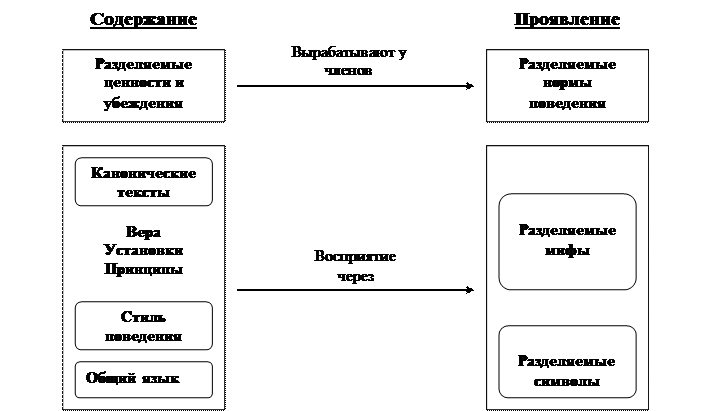 Рис.2.6. Соотношение между содержанием и проявлениями корпоративной культуры