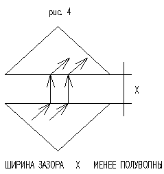 Диаметр волоконной жилы может быть весьма мал, т.к. явление прохождения света через стержень принципиально не меняется до тех пор, пока диаметр не станет сравнимым с длинной световой волны - в таком случае законы геометрической оптики теряют силу, и в значительной мере начинают проявляться волновые свойства света (дифракция). Проходя через оптоволокно диаметром 50 микрон, свет может претерпевать от 3000 до 20000 отражений на метр, следовательно, для обеспечения высокого светопропускания необходима гладкая поверхность и высокая прозрачность среды световода, а так же прилегающей к нему среды. Для передачи изображения необходима плотная укладка волокон в жгуты. Если при этом два соседних волокна расположены на расстоянии менее полуволны проходящего света, то свет может просачиваться из одного волокна в соседнее (рис. 4).