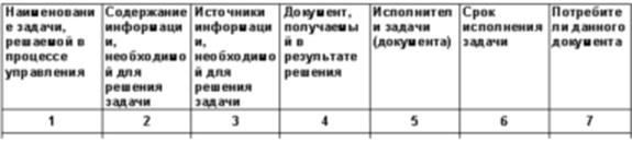 · выделить целевые функции управления, что отображается в строках первого (левого) столбца таблицы;