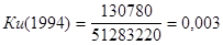 Коэффициент выбытия в 1993 году равнялся 1,91, в 94 резко снизился до 0,01 а затем немного увеличился до 0,08 в 1996 году. Можно сделать вывод - на предприятии практически не происходит обновления основных фондов.