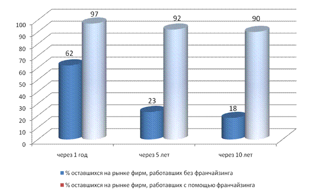 Рисунок 7 - Сравнительные данные выживаемости фирм с франчайзингом и без него