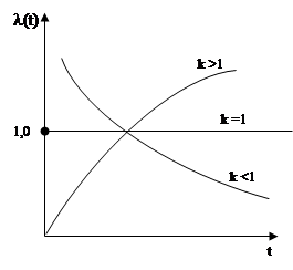 3) Интенсивность отказа l(t) – это условная плотность вероятности возникновения отказа не восстанавливаемого объекта, определенного рассмотренного момента времени, при условии, что до этого момента отказ не возник.