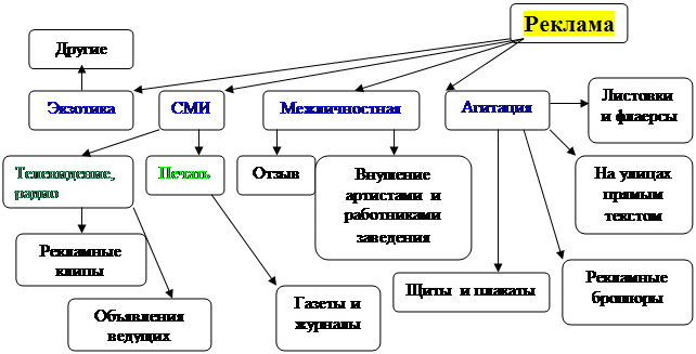 · Из используемых средств рекламы хочу лишь отметить, что не следует пользоваться рекламированием ресторана, тура, гостиницы, да и вообще любого места отдыха при помощи завлекания с применением приёмов, при которых людям пытаются внушить, что ими будут приобретены какие-либо навыки, которые якобы сделают его сильнее, удачливее, могущественнее. Следует лишь обещать то, что реально и то, чего они ожидают – это незабываемый отдых и исполнения почти всех его желаний.