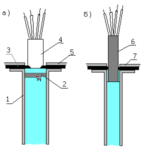 с пластмассовыми оболочками (СБВу, СБПу) начинают с того, что на расстоянии 40-60 мм от обмотки, соответствующей месту наложения второго бандажа у бронированных кабелей, с конца кабеля снимают пластмассовую оболочку(рис. б). На оставленном участке оболочки делают два продольных надреза, один против другого, и отгибают ее. Отступив еще на 30-45 мм от места перегиба оболочек, с конца кабеля снимают поясную изоляцию. На оставшуюся часть поясной изоляции с натяжением наматывают липкую изоленту 6. Ввод концов и заливка их кабельной массой выполняется так же. как и при разделке бронированных кабелей, только между основанием муфты и фланцем защитной трубы зажимают концы пластмассовой оболочки 7.