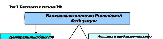 Существующая сегодня в России банковская система, так же как и большинство банковских систем мира, являются двух уровневой (рис.1), её организационные формы и другие характеристики непосредственно регулируются Конституцией РФ, законами о банках и о Банке России, другими федеральными законами, а так же нормативными правовыми актами Банка России.