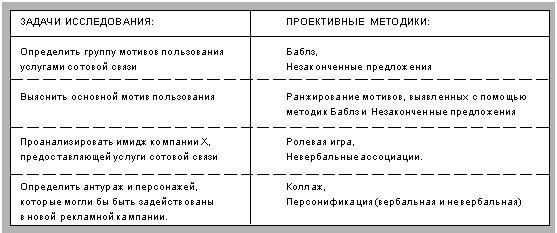 Ниже мы приведем пример использования проективных методик на стадии разработки рекламной кампании.