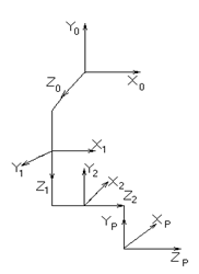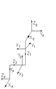 4. Упрощённая конструкция манипулятора со связанными системами координат