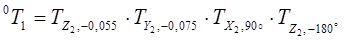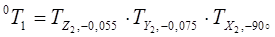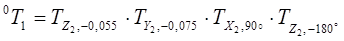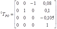 Определение однородной матрицы преобразования для первой точки позиционирования рабочего органа: