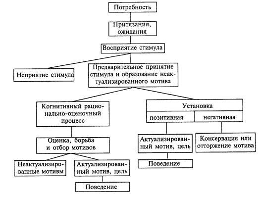 Между потребностью и стимулом как двумя крайними “полюсами” механизма мотивации находится целый ряд опосредующих звеньев, характеризующих процесс восприятия (в том числе оценки) стимула и образования неактуализированного (обычно латентного, скрытого или еще не полностью осознанного) мотива. На этом этапе цикла превращения стимула в детерминирующий поведение мотив стимул может быть предварительно принят, а может быть и отторгнут субъектом
