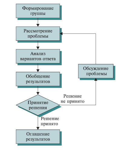 Получение согласованной информации высокой степени достоверности в процессе анонимного обмена мнениями между участниками группы экспертов для принятия решения.