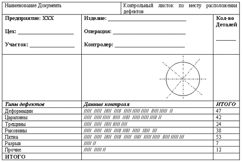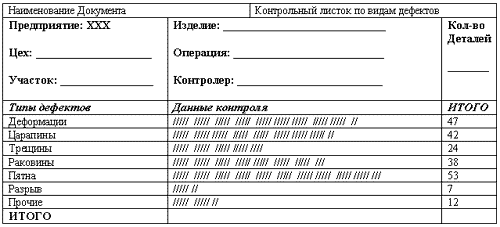 Контрольные листки могут применяться как при контроле по качественным, так и при контроле по количественным признакам.
