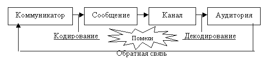 | Любая коммуникация предполагает обмен сигналами между передатчиком (коммуникатором) и приемником (целевая аудитория) с применением системы кодирования-декодирования для записи и интерпретации сигналов. Между передатчиком и приемником находятся шесть элементов системы коммуникации: