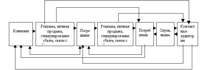 Посредники обмениваются информацией со своими клиентами и прочими потребителями. Потребители рассказываю о товарах другим потребителям и тем, кто не пользуется данными товарами или услугами. В целом каждый компонент этой системы выступает источником информации для остальных.