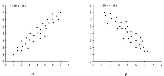 Рисунок 2. Диаграммы рассеяния: а) положительная корреляция,