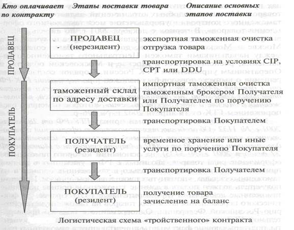 При «тройственном» контракте необходимо исключить такие ошибки, как, например, ситуацию, когда контракт между продавцом (нерезидентом) и покупателем (резидентом) заключается на условиях CIP - Москва, а грузополучателем в контракте или в отдельном официальном письме от покупателя указывается нерезидент, например, грузополучатель в Финляндии.