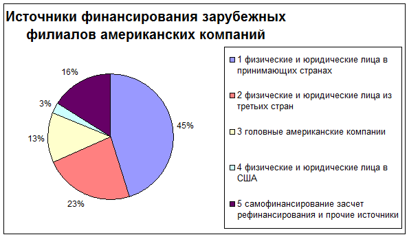 Транснациональные корпорации мобилизуют капитал, используя различные источники внутри страны и за границей: коммерческие банки, местные и международные рынки акций, государственные организации и свои собственные корпоративные системы в форме внутренней прибыли на цели реинвестирования. С учетом всех этих источников финансирования инвестиции в иностранные филиалы – инвестиционный компонент международного производства – оценивались в 1996 году в 1,4 трлн. долларов. Из этой суммы лишь 350 млрд. долларов, т.е. ее четверть, финансировалась за счет прямых иностранных инвестиций. Из этого следует, что удельный вес международного производства также значительно выше: в общемировом объеме валовых вложений в основной капитал на иностранные филиалы приходилась примерно одна пятая часть. (Этот показатель не позволяет отразить дополнительные инвестиции, контролируемые ТНК через различные неакционерные каналы, например, по линии союзов корпораций).