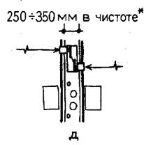 | д — расположение двух кухонь у одной стены (с каналами вытяжной вентиляции);