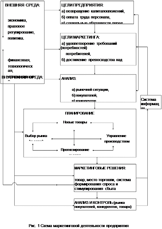 Маркетинг это комплексная система организации производства и сбыта продукции, ориентированная на удовлетворение потребностей конкретных потребителей и получение прибыли на основе ис следований и прогнозирования рынка, разработки стратегии и тактики поведения на рынке с помощью маркетинговых программ. В этих программах заложены мероприятия по улучшению товара и его ассортимента, изучению покупателей, конкурентов и конкуренции, по обеспечению ценовой политики, формированию спроса, стимулированию сбыта и рекламе, оптимизации каналов товародвижения и организации сбыта, организации технического сервиса и расширения ассортимента представляемых сервисных услуг.