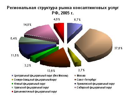 По данным ЮНИПРАВЭКС, география российского консалтингового рынка по состоянию на конец 2004 г. имела следующую структуру (Диаграмма 4