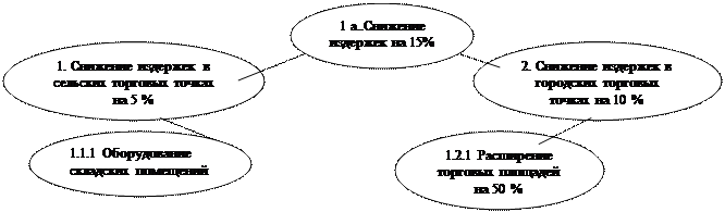 Например, "дерева целей": генеральная цель - удовлетворение потребностей человека в пище. Подцели первого уровня - удовлетворение потребностей в белках, жирах, углеводах, витаминах. Подцели второго уровня - удовлетворение потребностей в хлебе, молоке, масле, овощах, фруктах и т.д.