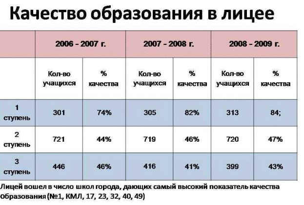 Рис. 2. Качество образования в лицее.[8]