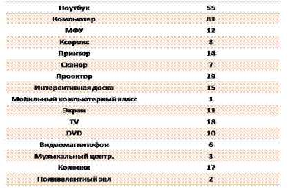 В прошлом году лицей усовершенствовал свою материально-техническую базу. Весь спектор приобретенных технических товаров представлен на рисунке 3(слева - техническое средство, справа – количество приобретённой продукции) :