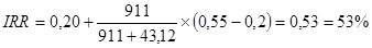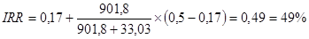 Т.е. срок окупаемости инвестиций равен 0,57 года от начала получения доходов, или 1,57 года от начала инвестирования.