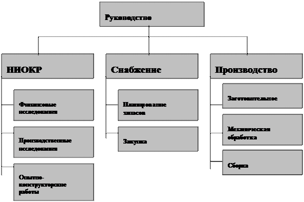Классическим образцом горизонтального разделения труда на производственном предприятии, например, являются производство, маркетинг и финансы. Они представляют собой основные виды деятельности, которые должны быть успешно выполнены, чтобы фирма добилась поставленных целей.