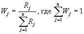 Известно, что одним из недостатков анкетных методов является значительная субъективность экспертной оценки, поэтому для повышения степени ее объективности обычно проводят анкетирование нескольких экспертов. В случае, если ранжирование производится несколькими экспертами, то наивысший ранг присваивается фактору, получившему наименьшую сумму рангов, и наоборот, фактор, собравший наибольшую сумму рангов, получает самый низкий ранг N. Для формализации этой процедуры удобно воспользоваться относительными весами факторов, которые можно вычислить путем следующей обработки анкет.