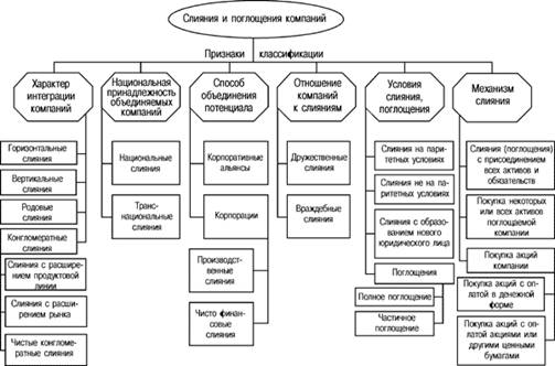 2.1.1.Классификация основных типов слияния и поглощения компаний. 14
