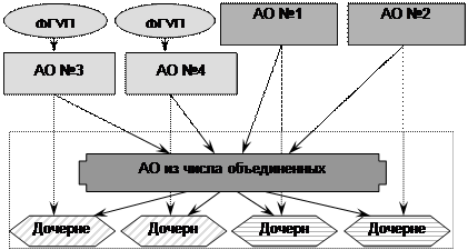 Рис. 5 Схема создания интегрированной структуры типа холдинга с участием государства.