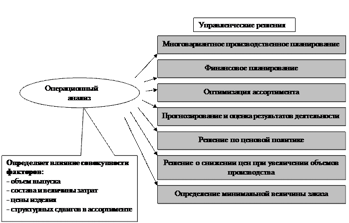 Применение операционного анализа позволяет обосновать широкий спектр показателей, влияющих на конечную эффективность деятельности: