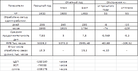 Полноту использования трудовых ресурсов можно оценить по количеству отработанных дней и часов одним работником за исследуемый период времени, а также по степени использования фонда рабочего времени (ФРВ).
