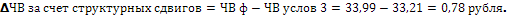 Разность между фактическим показателем и условным 3 показывает изменение часовой выработки за счет структурных сдвигов.