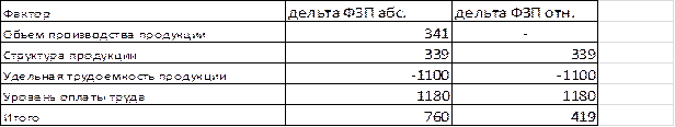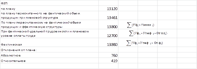 Абсолютное отклонение – определяется как разность между фактическим и плановым фондом ФЗП.