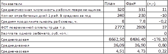 Таким образом перерасход повременной з/п произошёл за счет увеличения численности рабочих и роста среднечасовой оплаты труда.